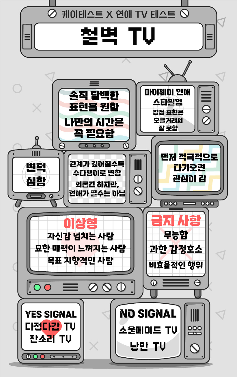 이번에 케이테스트에서 TV로 알아보는 나의 연애 성향은 무엇인지 알아보는 테스트가 존재한다고해서 여러분들께 소개드리려고 합니다.