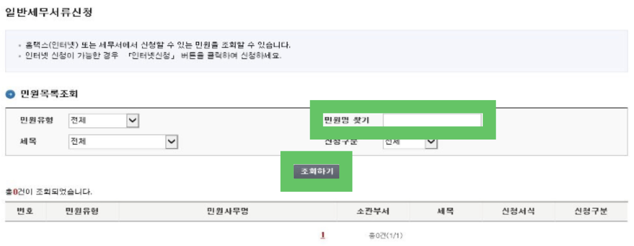1. 홈택스 접속 후 신청/제출 클릭 후 일반세무서류 신청 클릭