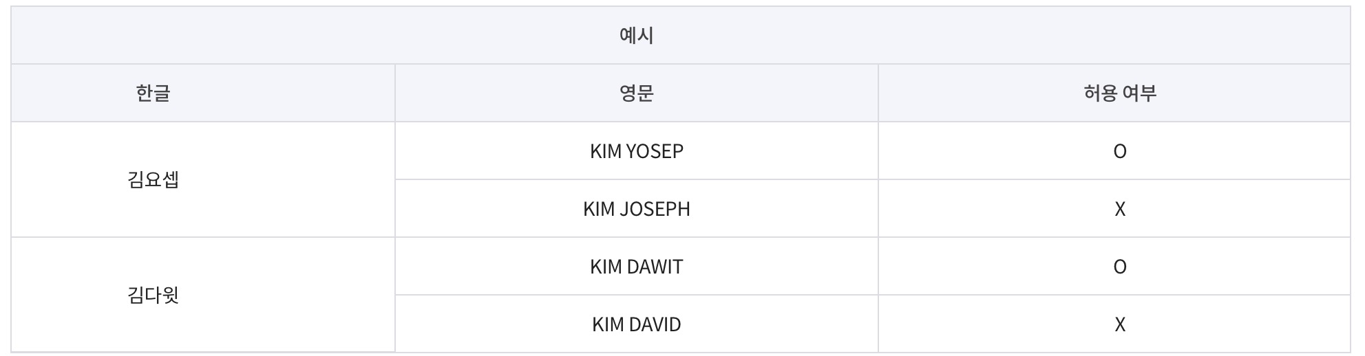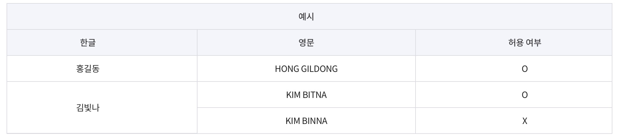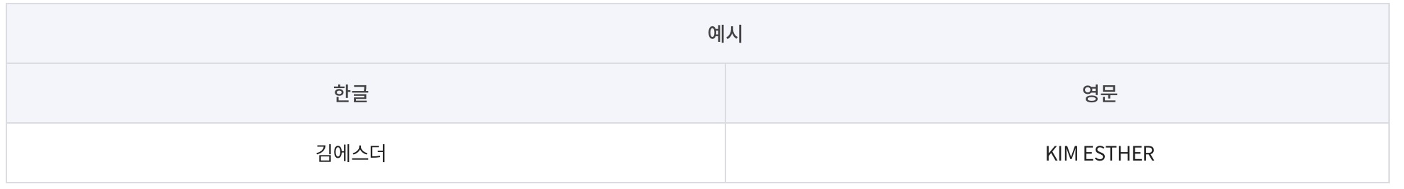 이때 발음에 따른 음운 변화는 반영하지 않습니다(여권법 시행규칙 제2조의2제1항)
