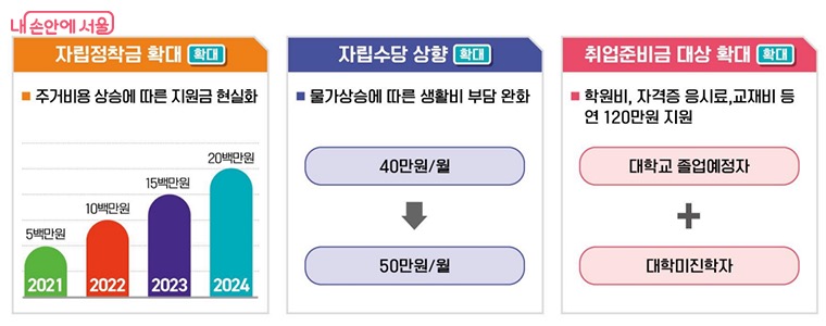 든든한 첫 출발하기(자립정착금 증액, 의료비, 주거비 지원)