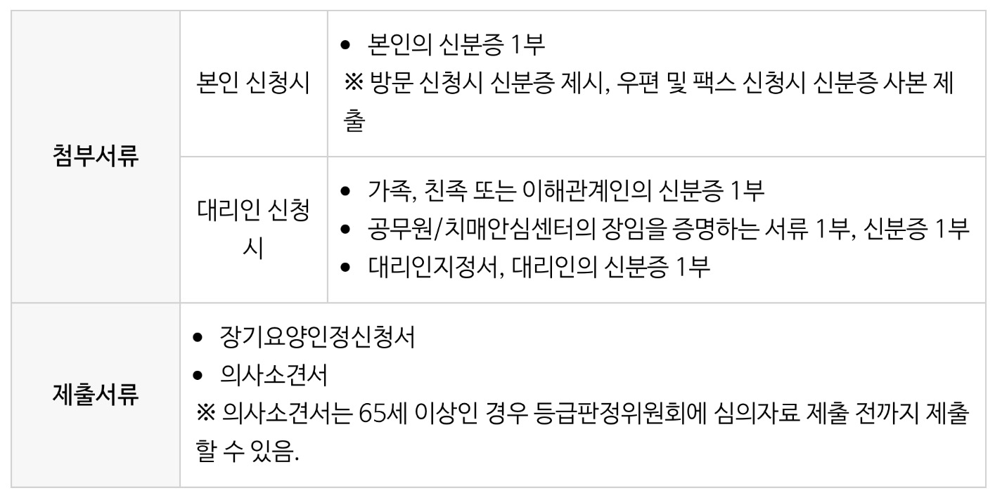 ➡️대리인 신청 시: 가족, 친족 또는 이해관계인의 신분증 1부, 공무원/치매안심센터의 장임을 증명하는 서류 1부, 신분증 1부, 대리인지정서, 대리인의 신분증 1부