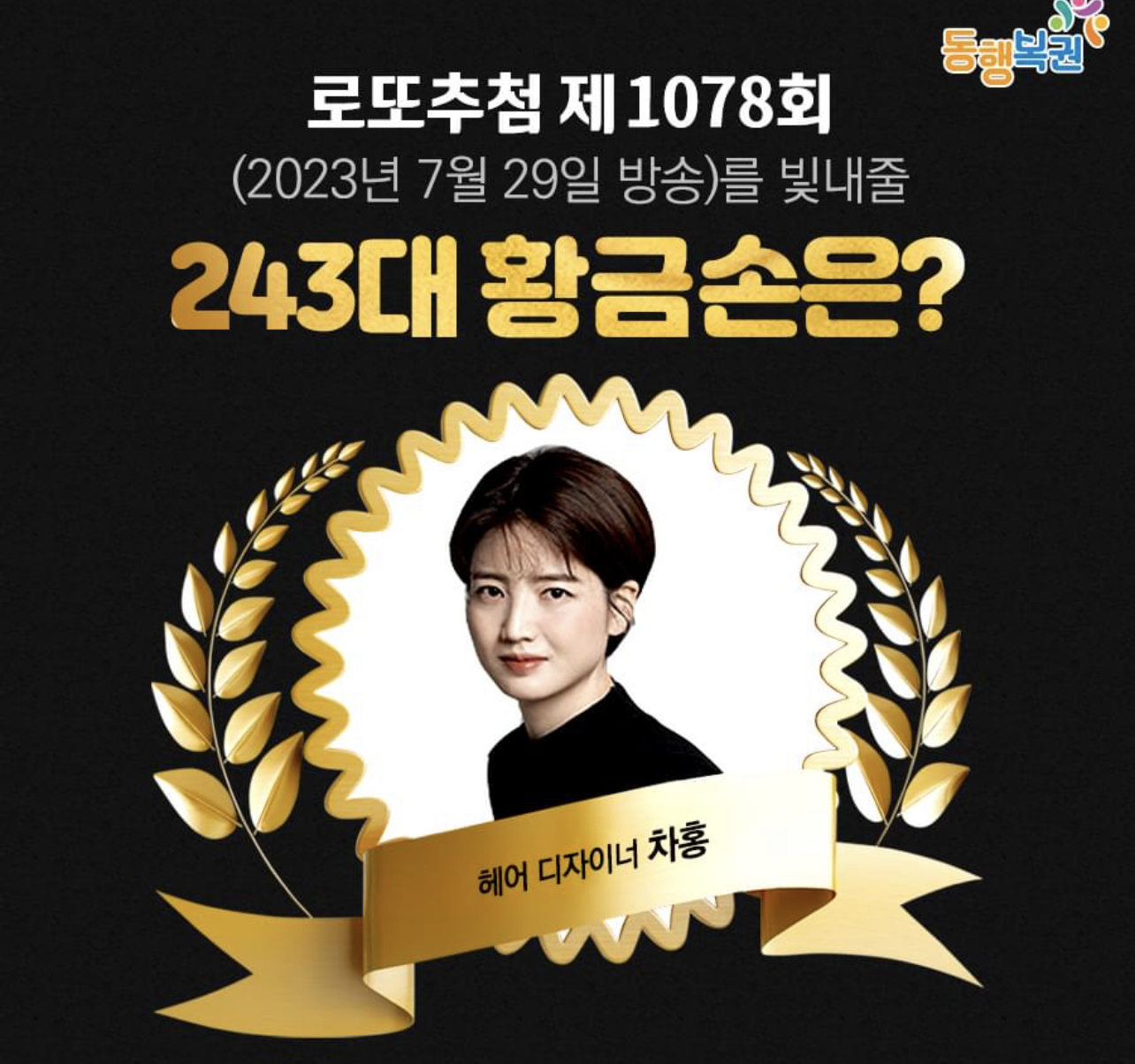 헤어 디자이너 차홍이 1078회 MBC '생방송 행복드림 로또 6/45'의 '황금손'으로 출연한다고 합니다