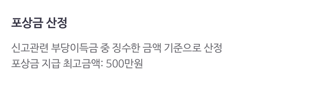 포상금 지급신청서 등 관련서류 제출 → 신청인의 계좌로 입금(지급)