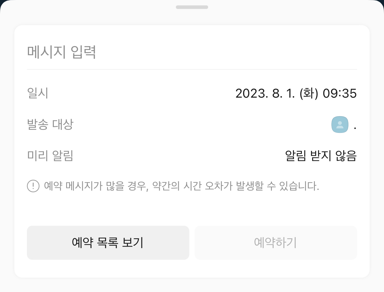 그럴때에는 아까처럼 다시 예약메시지 전송까지 들어와서 “예약 목록 보기”를 눌러주시길 바랍니다.