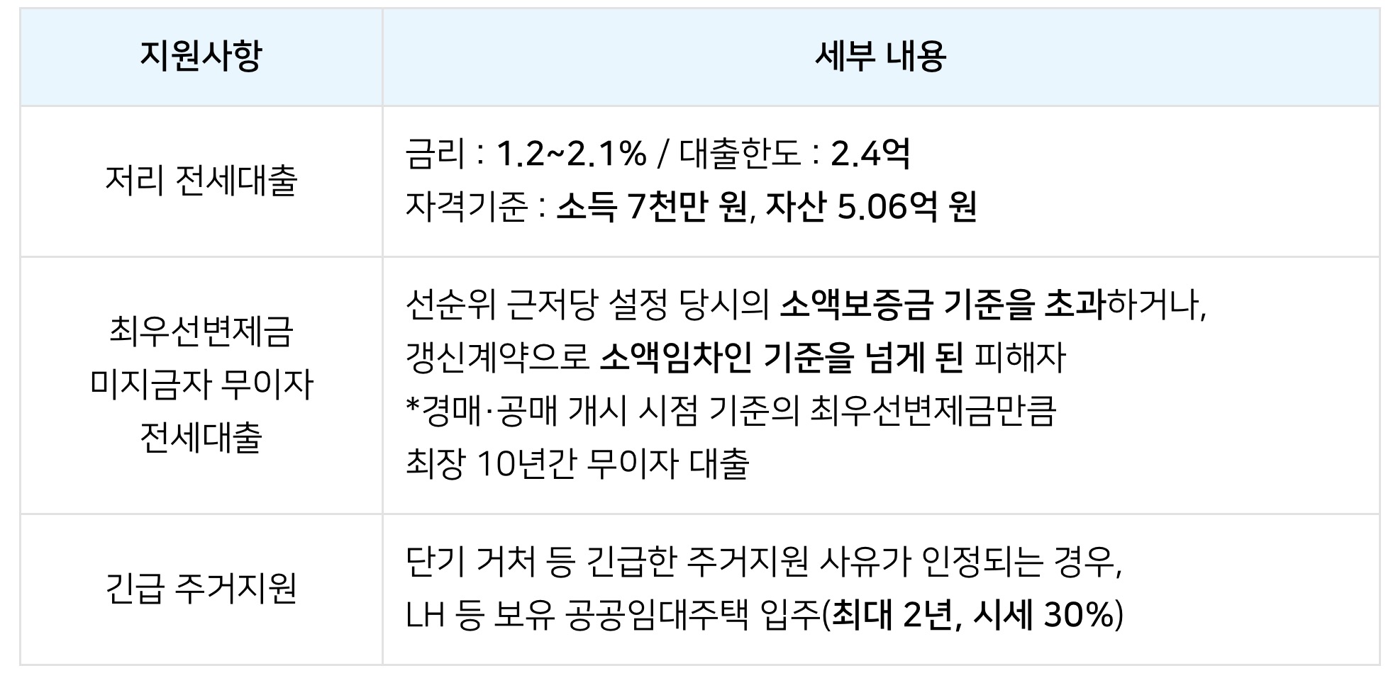 최우선변제금 미지금자 무이자 전세대출: 선순위 근저당 설정 당시의 소액보증금 기준을 초과하거나, 갱신계약으로 소액임차인 기준을 넘게 된 피해자