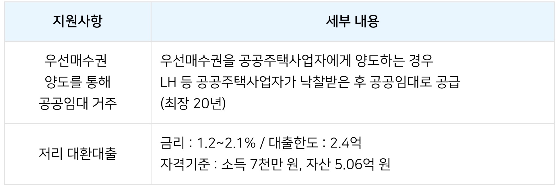 - 자격기준 : 소득 7천만 원, 자산 5.06억 원