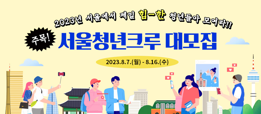 서울시가 서울의 매력과 비전을 발굴해 온라인 콘텐츠로 제작하는 ‘서울청년크루’를 2023년 8월 7일부터 8월 16일까지 모집한다고 밝혔습니다.