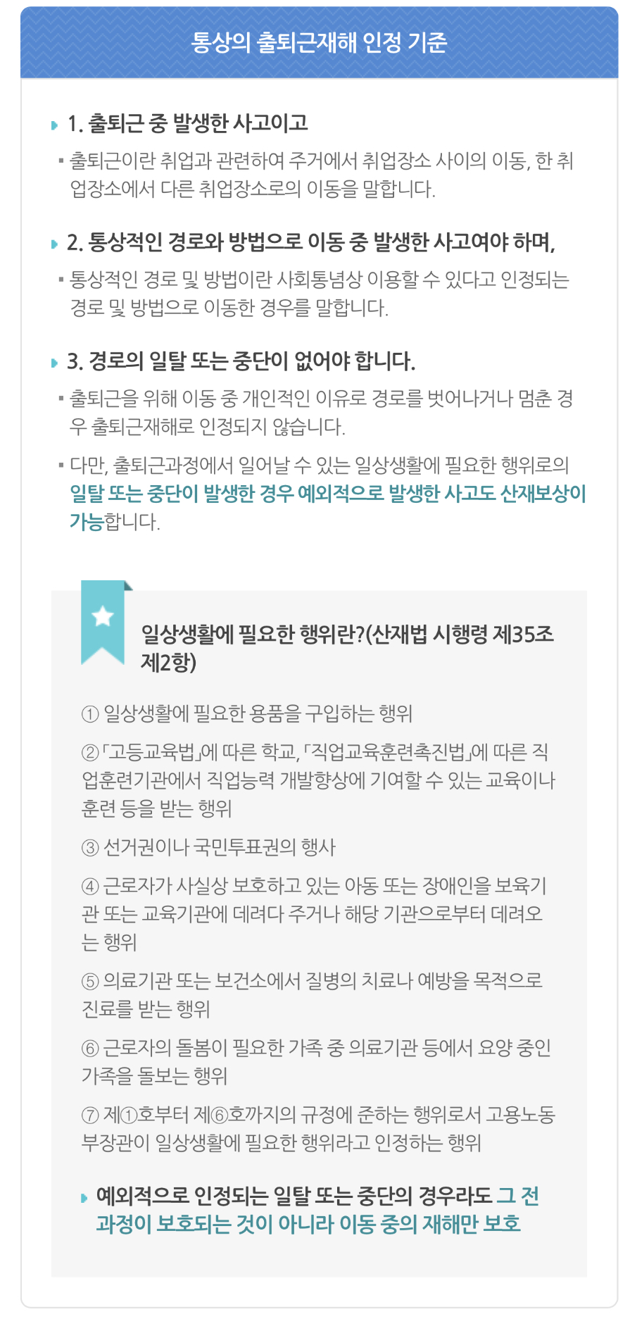 ✅일상생활에 필요한 행위란?(산재법 시행령 제35조 제2항)