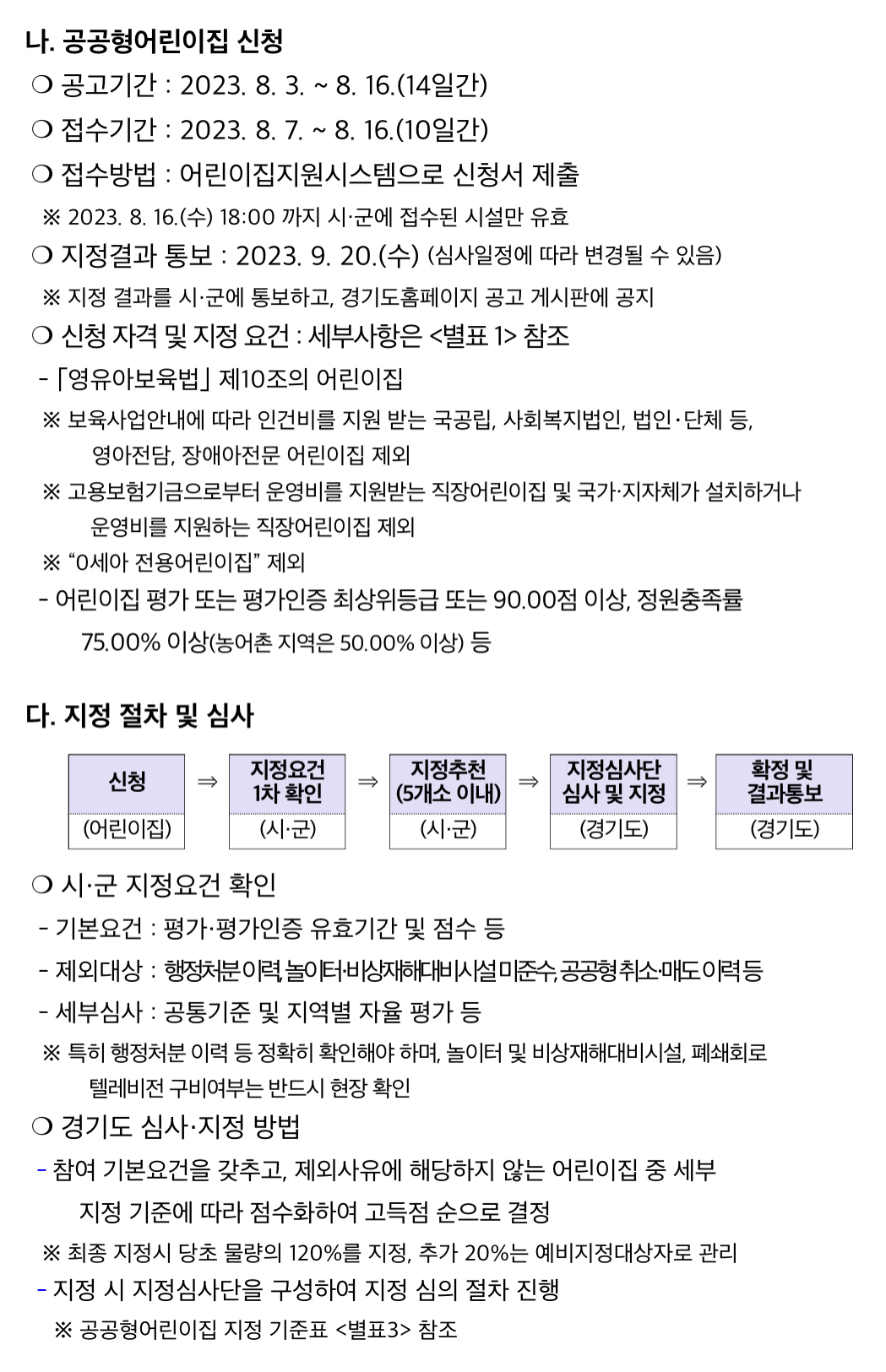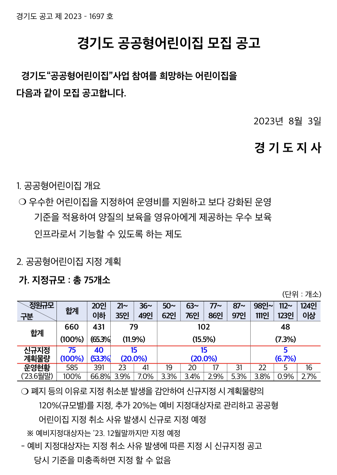 경기도가 공공형 어린이집을 75개소 신규 지정을 위해 2023년 8월 7일부터 8월 16일까지 참여 희망 어린이집을 모집한다고 밝혔습니다.
