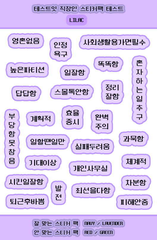 테스트잇이라는 다양한 테스트를 만드는 사이트에서 스티커팩 시리즈로 테스트를 만들었는데 이번엔 직장인편이 나와서 소개드리려고 합니다.