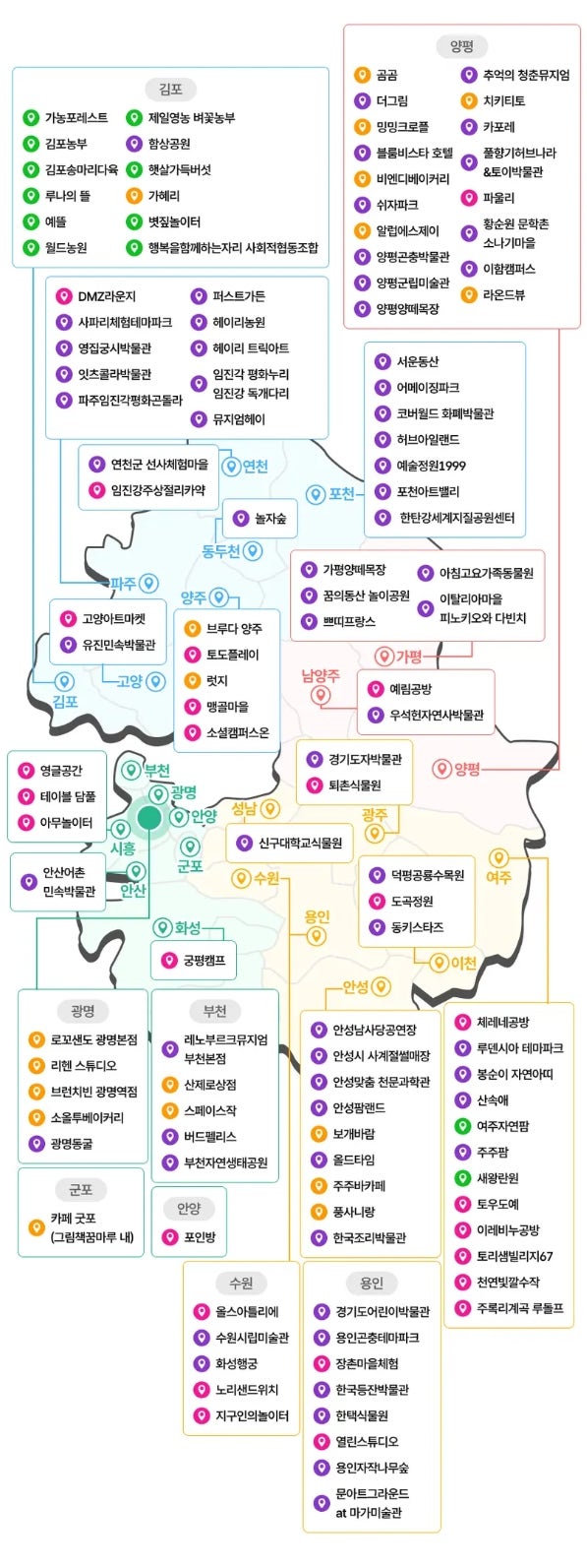 주요 관광시설로는 가평 쁘띠프랑스, 안성팜랜드, 포천 허브아일랜드, 파주 임진각평화곤돌라 등 도내 인기 관광지가 포함돼 있습니다.
