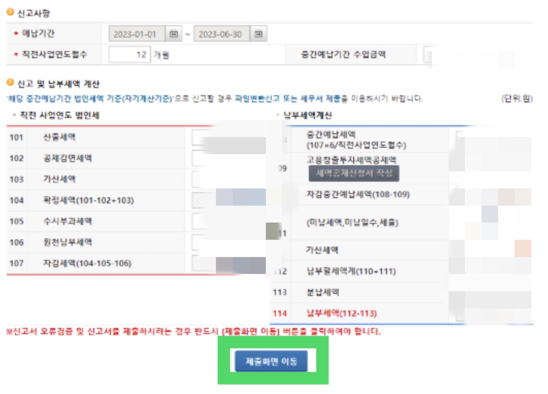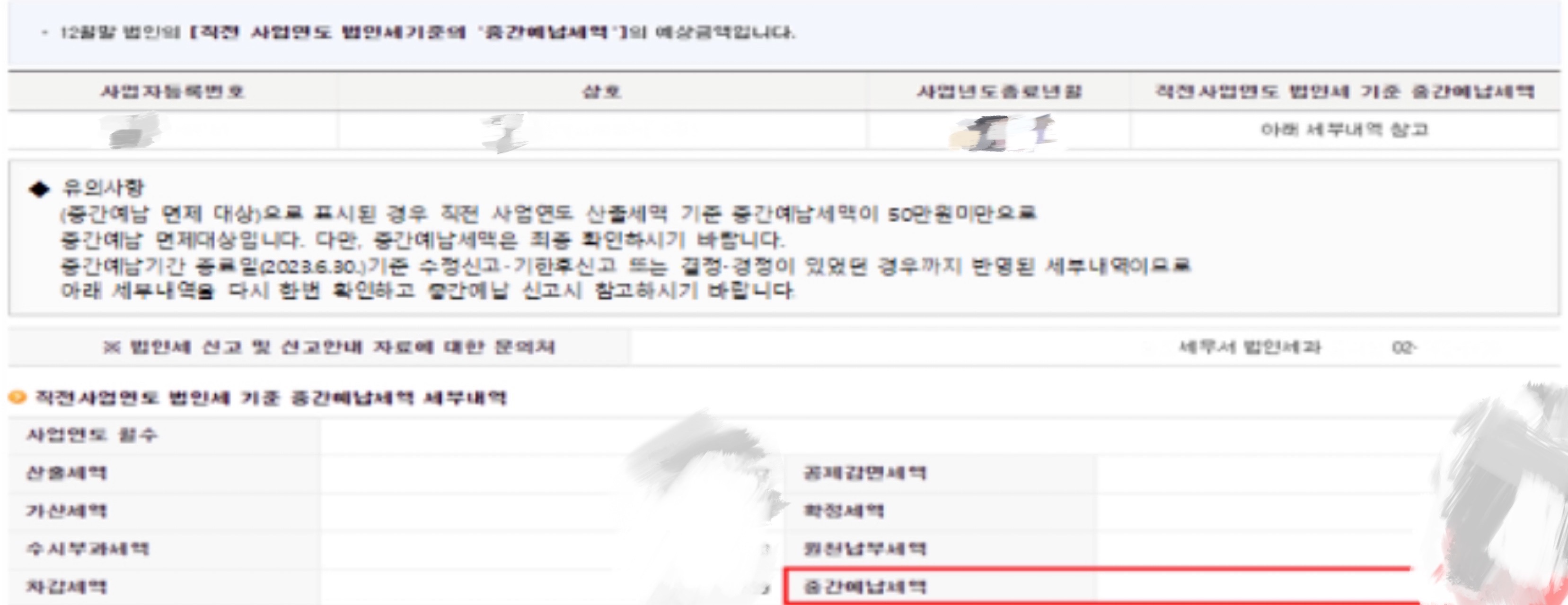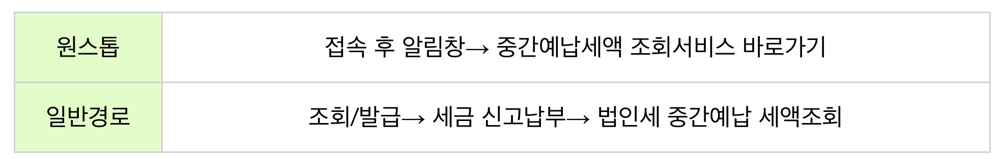 홈택스의 중간예납 세액조회 서비스를 통해 직전 사업연도 산출세액 기준 중간예납 예상세액과 면제 여부를 확인할 수 있습니다.