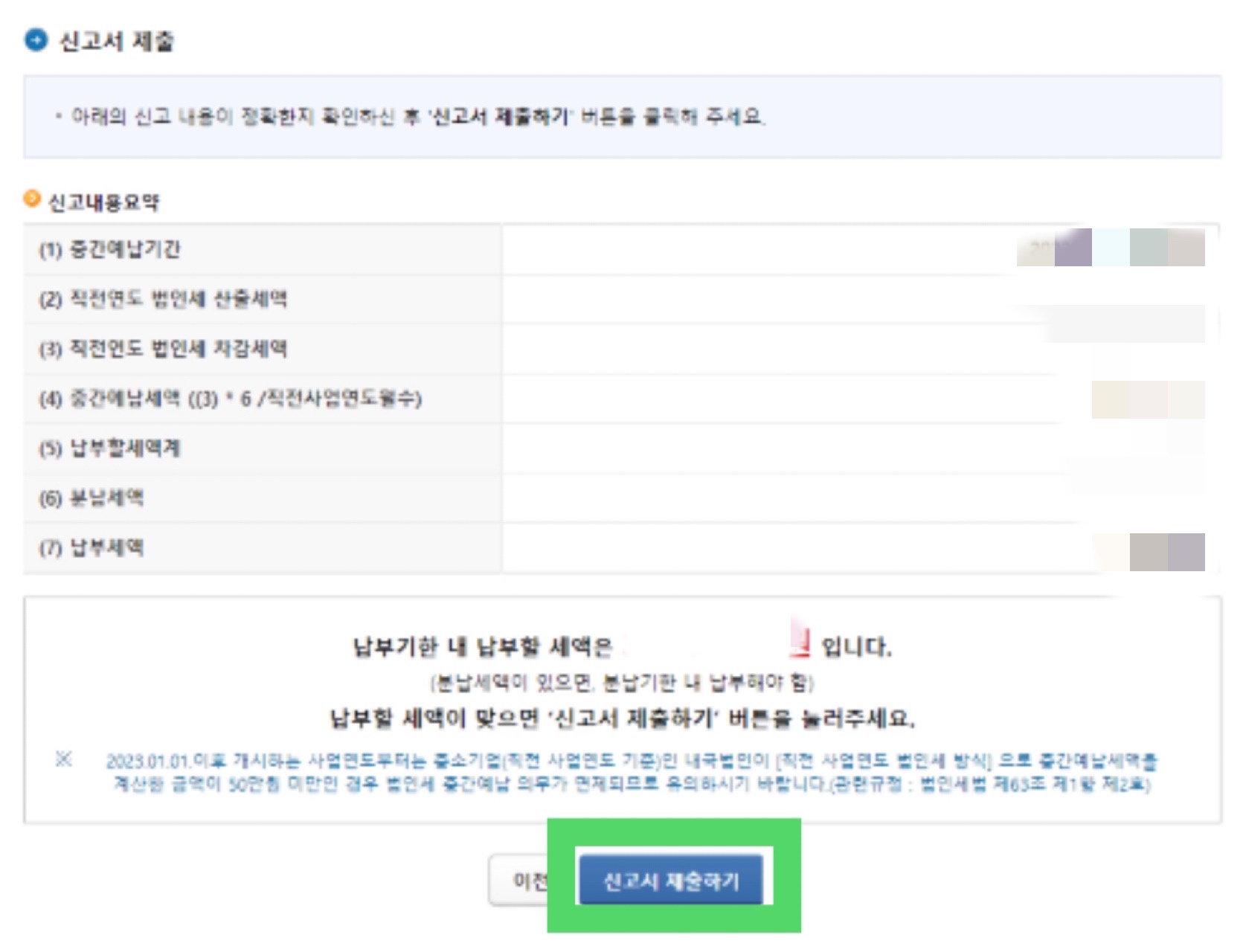 단, 중간예납 납부기한 내에 중간결산으로 신고하지 않은 경우에는 직전 사업연도 산출세액 기준으로 중간예납세액을 납부해야 합니다.