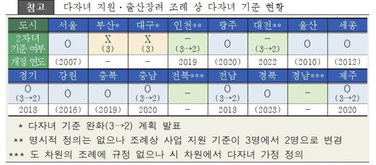 이에 따라 전국 17개 광역자치단체의 다자녀 기준이 사실상 '2자녀'로 통일된다고 합니다.