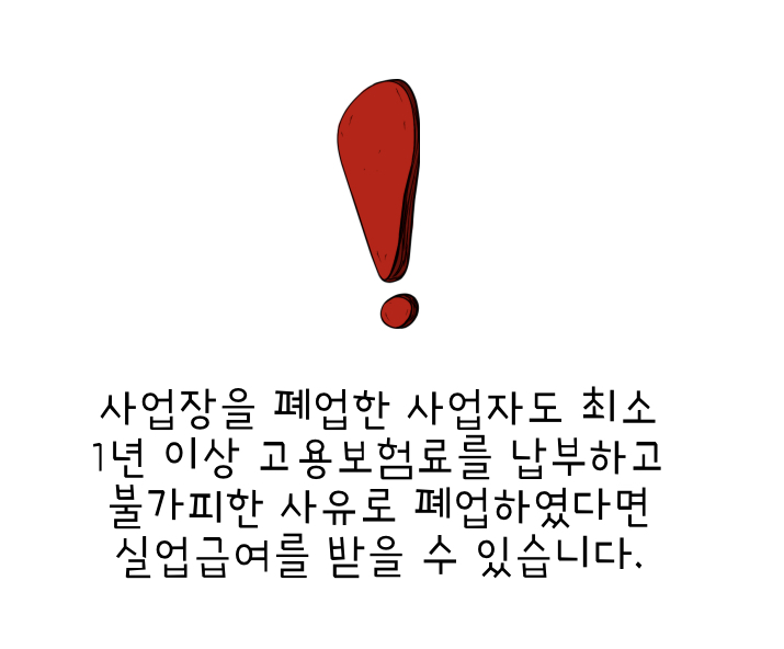 사업장을 폐업한 사업자도 최소 1년 이상 고용보험료를 납부하고 불가피한 사유로 폐업하였다면 실업급여를 받을 수 있습니다.