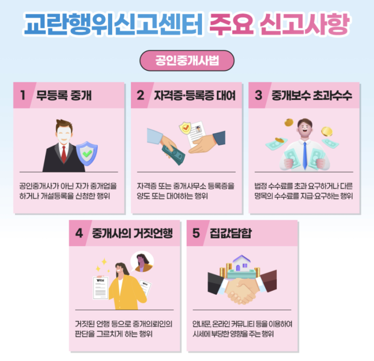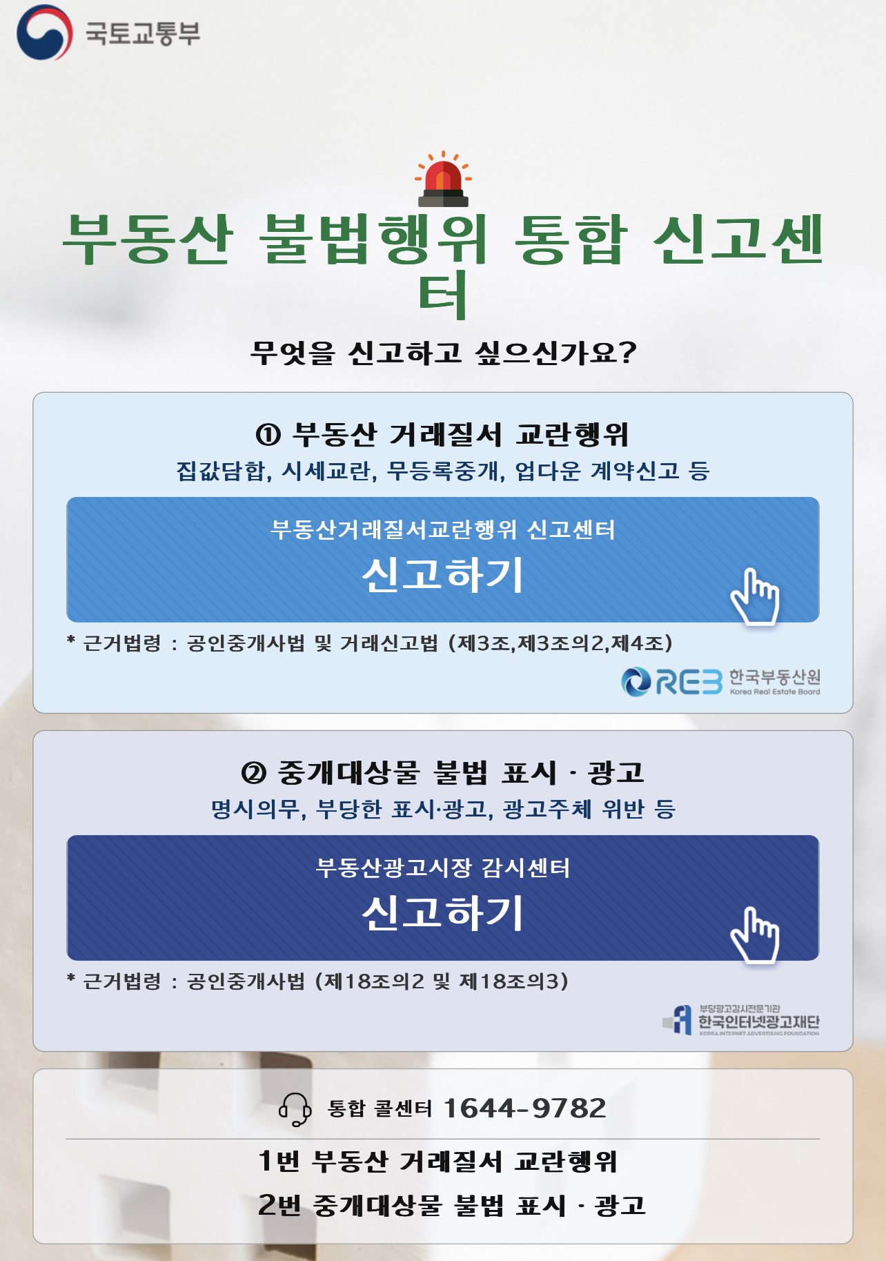 부동산 불법행위, 통합 신고센터에서 신고하시길 바랍니다.