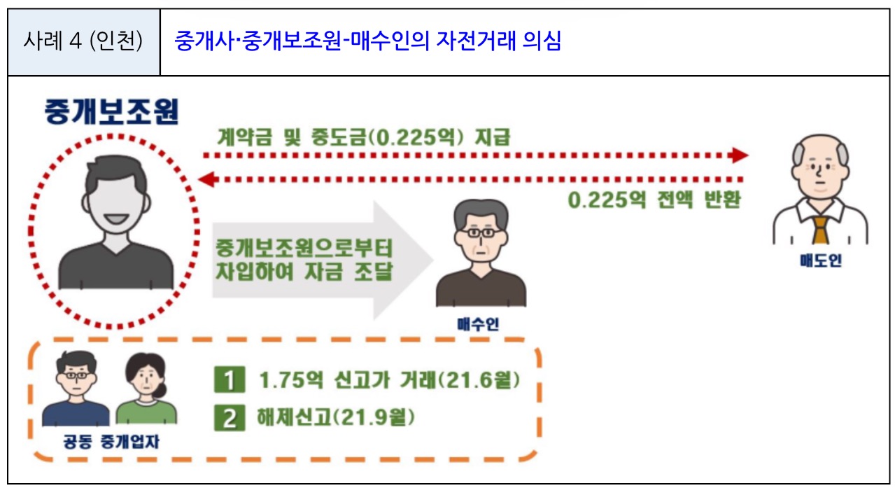 사례 4 (인천) 중개사‧중개보조원-매수인의 자전거래 의심
