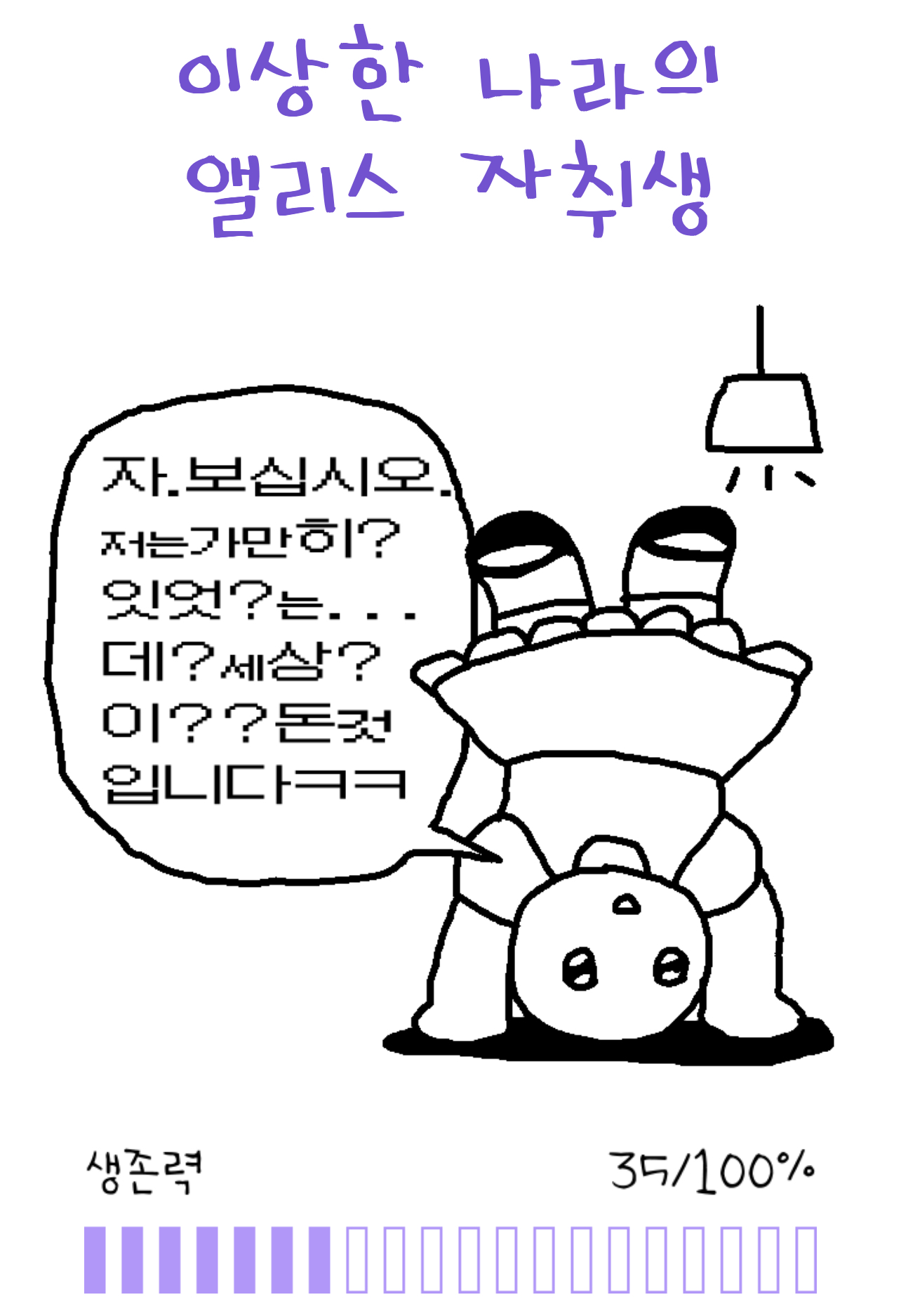 이상한 나라의 앨리스 자취생이 나왔으며 생존력 점수는 35%라고 합니다.