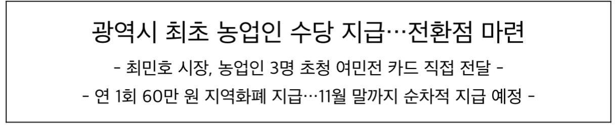 마지막으로 이기풍 농업정책과장은 “어려운 여건에서도 농업에 종사하는 농업인들에게 이 수당이 조금이나마 도움 되었으면 한다”라고 말했습니다.