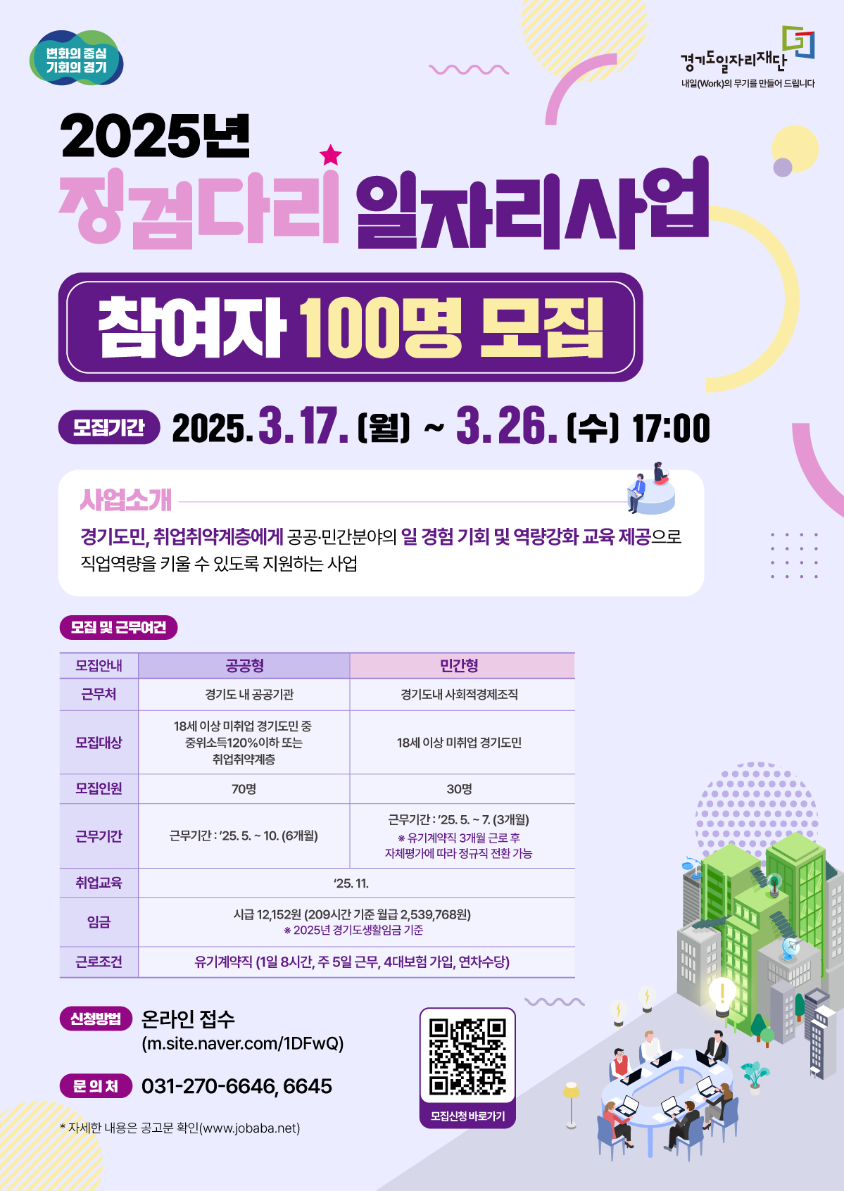 ✔️공공형은 18세 이상 미취업 경기도민 중 기준 중위소득 120% 이하 또는 6개월 이상 장기 실직자 등 취업 취약계층을 대상으로 합니다.
