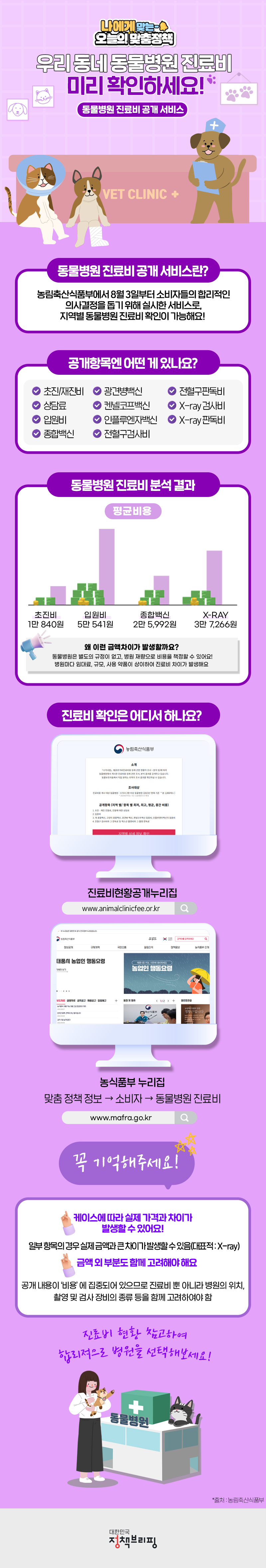 먼저 동물병원 진료비 공개 서비스란 농림축산식품부에서 8월 3일부터 소비자들의 합리적인 의사결정을 돕기 위해 실시한 서비스로 지역별 동물병원 진료비 확인이 가능합니다.