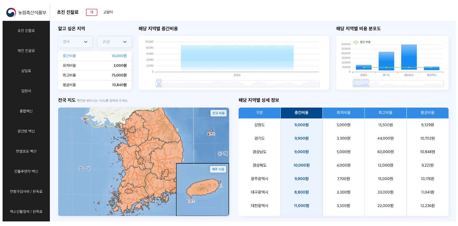 동물병원 진료비 현황 공개시스템