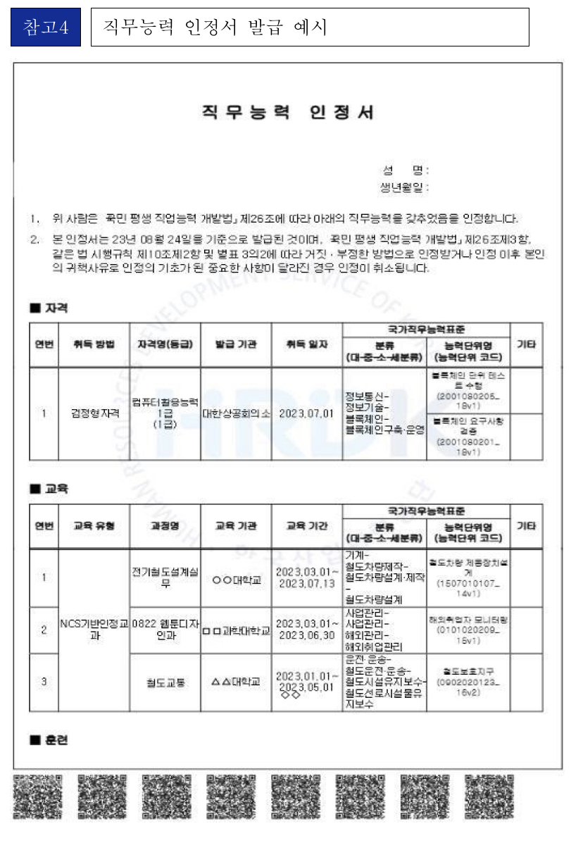 자격·훈련·교육·경력 증빙, 직무능력인정서 하나로 가능