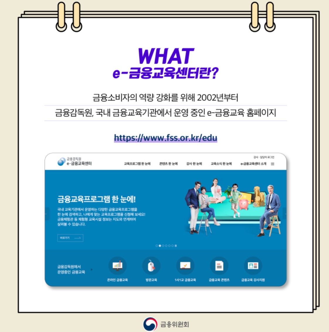 금융위원회 자료에 따르면 생애주기 대상별 꼭 알아야 할 금융지식, 금융교육 콘텐츠를 한눈에 확인할 수 있는 e-금융교육센터를 소개하는데 이에 자세한 안내드리겠습니다.