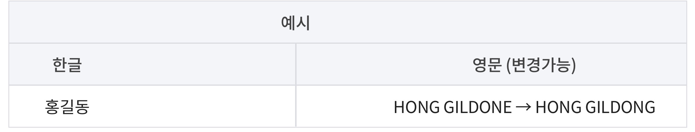 • 로마자성명과 한글성명 유사한 발음으로 인정될 경우에는 변경이 불가합니다.