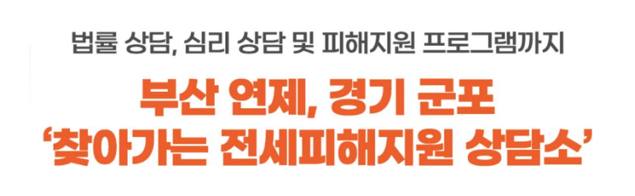 오는 2023년 9월 18일(월)부터는 지자체 수요 및 피해신청 접수현황 등을 종합 고려해 부산 연제 및 경기 군포에 찾아가는 상담서비스를 운영할 계획이라고 합니다.