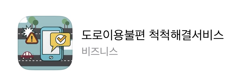 1. 먼저 앱스토어 또는 구글 플레이 스토어를 통해서 도로이용불편 척척해결서비스 앱을 다운받아주시길 바랍니다.