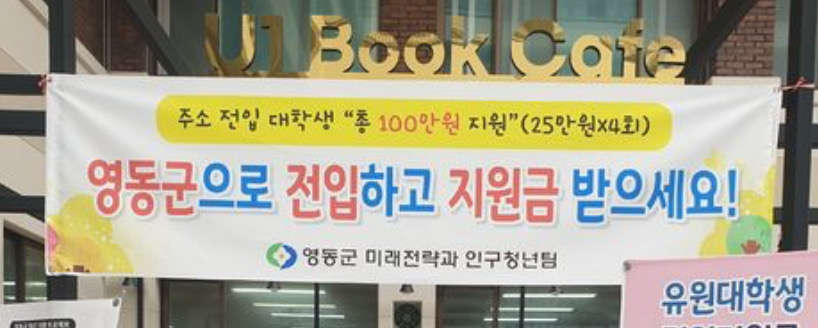 영동군으로 전입하는 유원대 학생에게는 최대 100만원의 전입 지원금이 지급된다고 합니다.