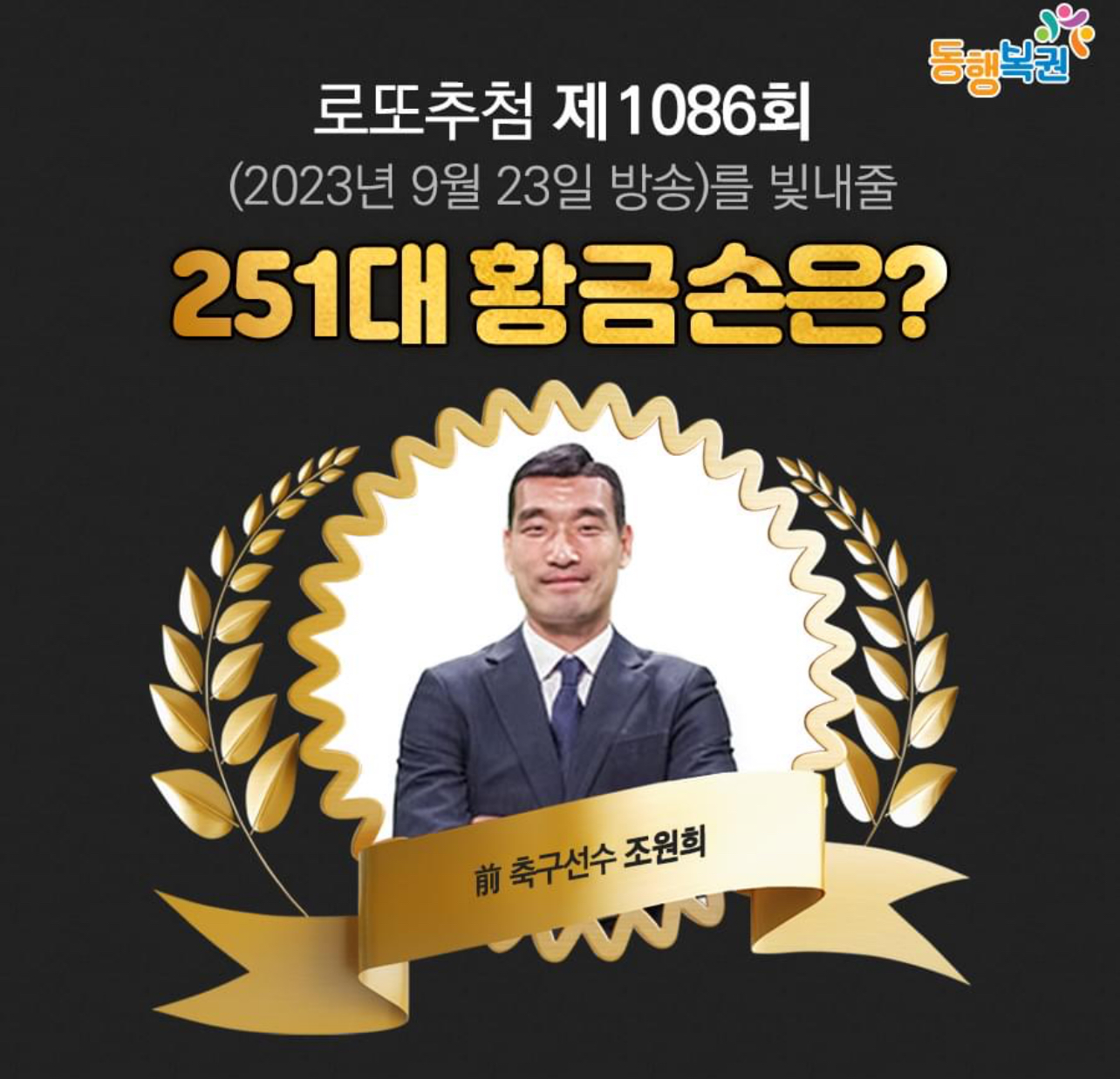 전 축구선수 조원희가 1086회 MBC '생방송 행복드림 로또 6/45'의 '황금손'으로 출연합니다.