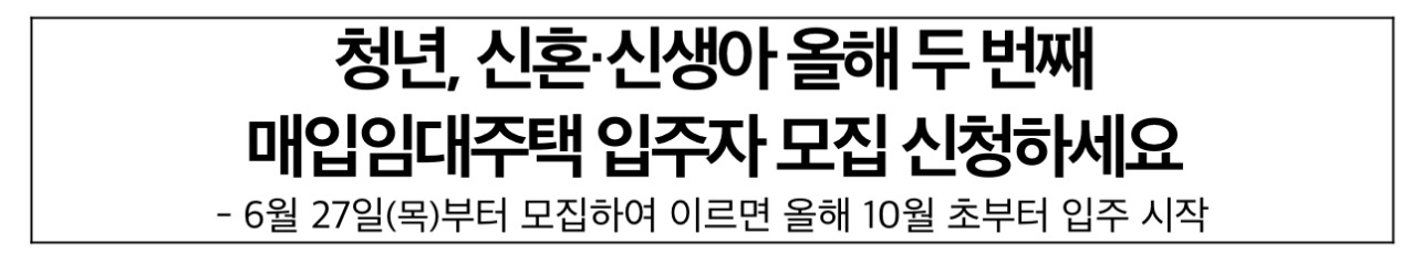 매입임대주택은 우수한 입지, 신속한 입주 등의 장점이 있는 공공임대주택의 한 유형으로, 특히 저렴한 임대료로 장기간 안심하고 거주할 수 있어 청년·신혼부부에게 높은 인기가 예상된다고 합니다.