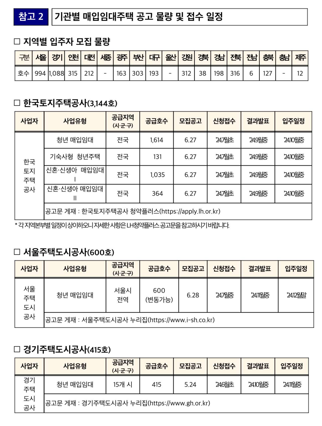 서울주택도시공사 등에서 모집하는 매입임대주택(1,133호)은 해당 기관별 누리집(붙임 참조)에서 확인할 수 있습니다.