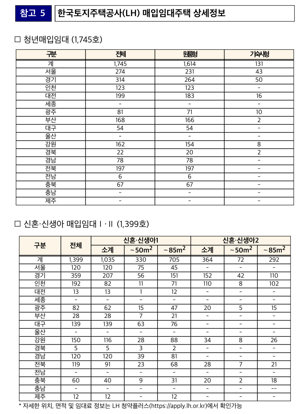 한국토지주택공사(이하, LH)에서 모집하는 청년(1,745호), 신혼·신생아(1,399호) 매입임대주택은 6월 27일(목)부터 입지·면적·임대료·입주자격 등의 정보를 LH청약플러스(https://apply.lh.or.kr)에서 확인할 수 있습니다.