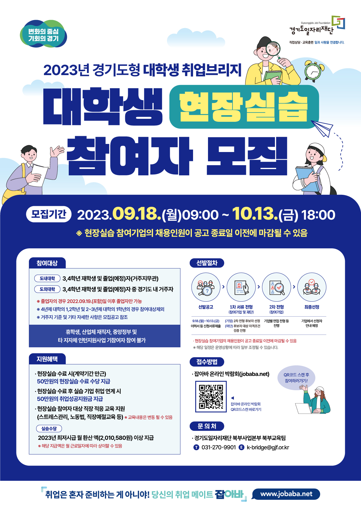 경기도는 대학생의 취업 기회를 확대하고 기업의 우수인력 확보를 지원하기 위해 대학생 현장실습 참여자를 모집중입니다.