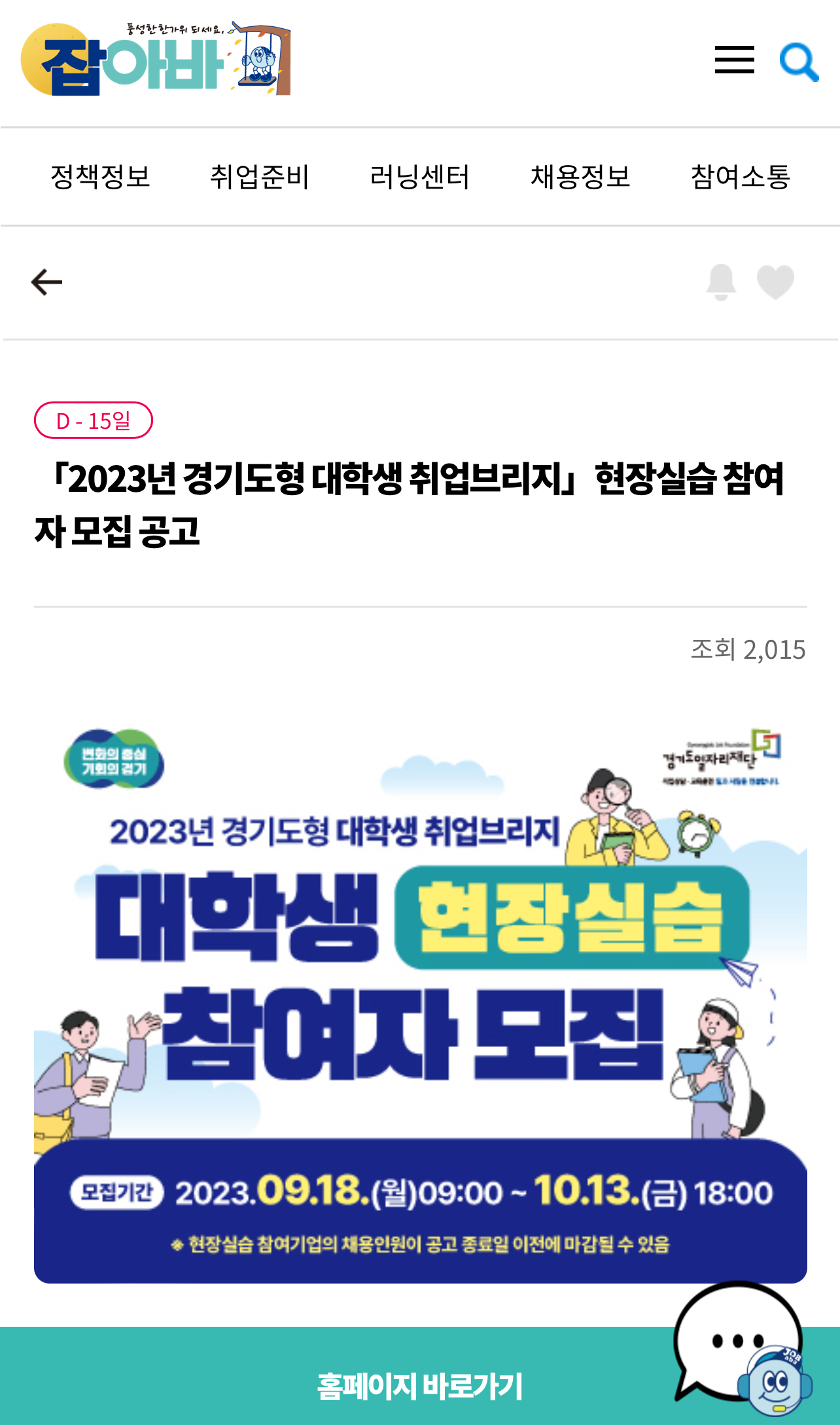 본 설명은 일자리플랫폼 잡아바 홈페이지