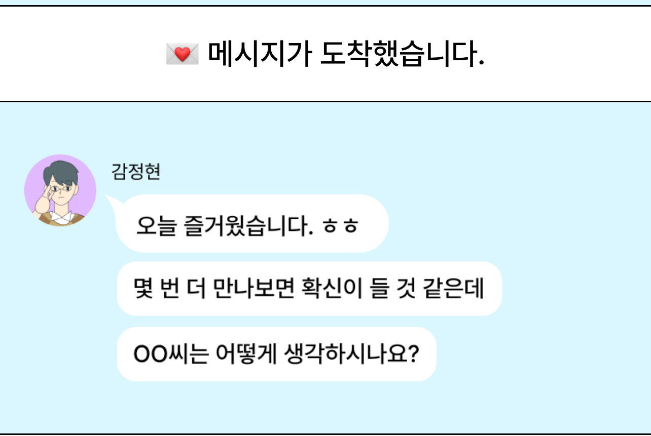 시작에 앞서 내일 소개팅을 한다고 생각하시고 상대방의 모습을 떠오르시길 바랍니다.