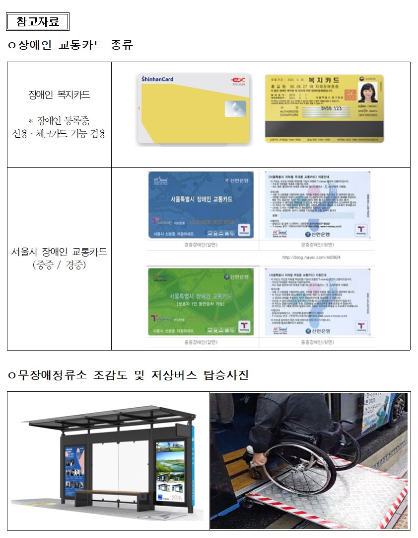서울버스를 이용할 때 뿐만 아니라 수도권 환승요금체계가 적용되는 경기·인천버스를 환승 이용할 때에도 요금을 지원함으로써 장애인의 대중교통 무료이용지원범위를 수도권까지로 확장했다고 합니다.