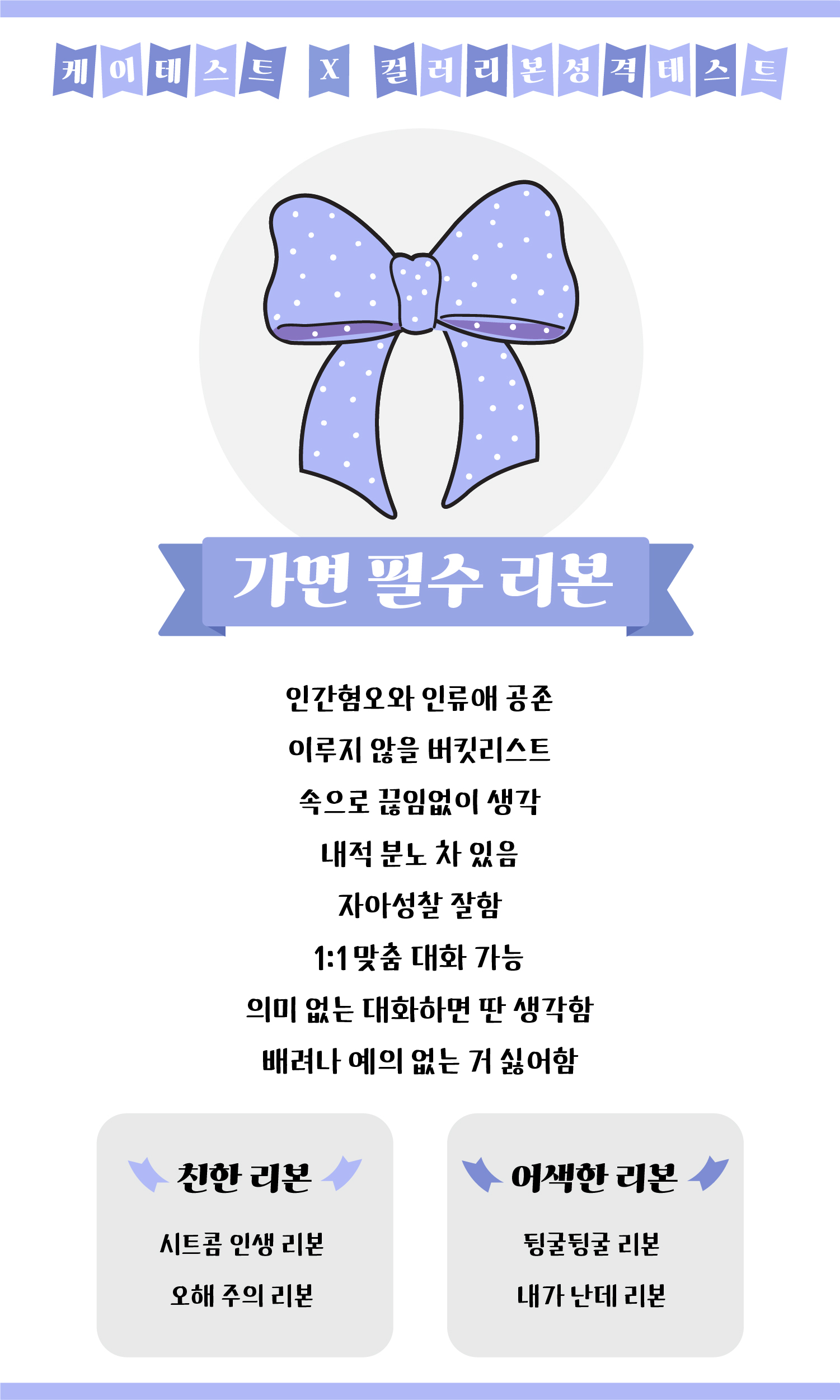 케이테스트에서 컬러 리본으로 알아보는 나의 성격은 무엇인지 찾아보는 테스트가 있어서 소개드리려고 합니다.