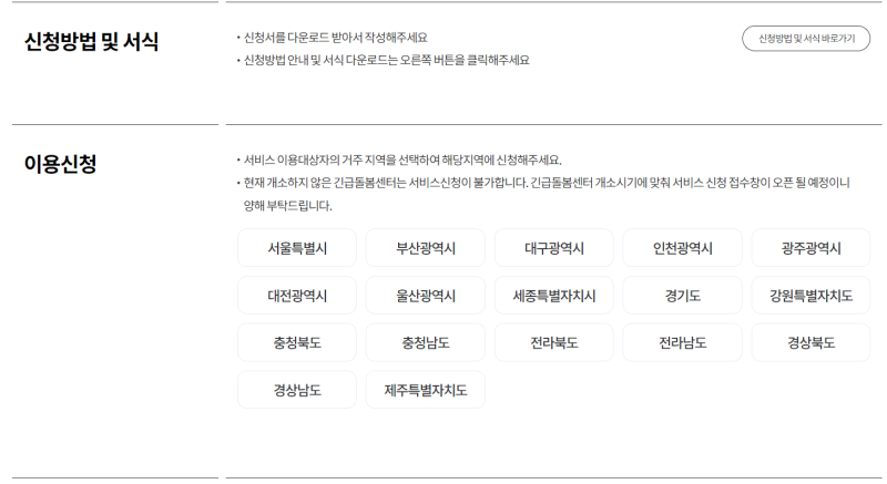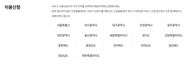➡️서비스 이용 대상자의 거주 지역을 선택하여 해당 지역에 신청
