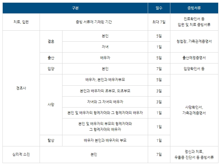 ➡️사유에 따라 1회당 1~7일 이용