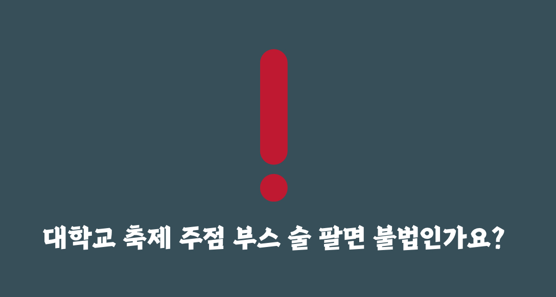 주류를 판매하려면 관할 세무서장의 면허를 받아야 하는데 대학교 축제에서 주점을 운영하는 단과대학 학생회나 동아리는 주류 판매에 대한 면허를 취득하지 않고 단발성으로 주류를 판매합니다.