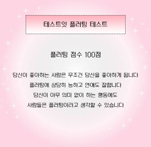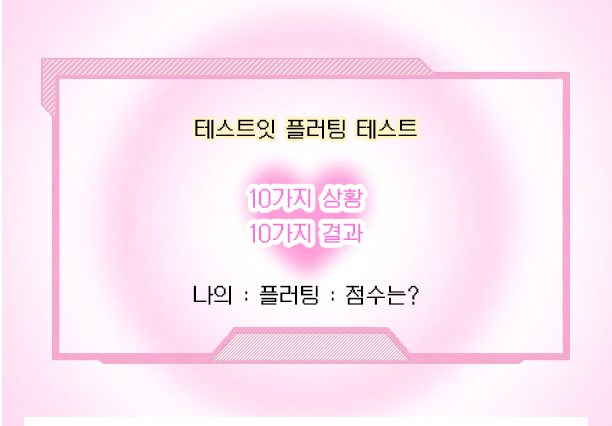 테스트잇에서 본인이 얼마나 플러팅을 잘하는지 알아보는 “플러팅 테스트”가 나와서 소개드리려고 합니다.