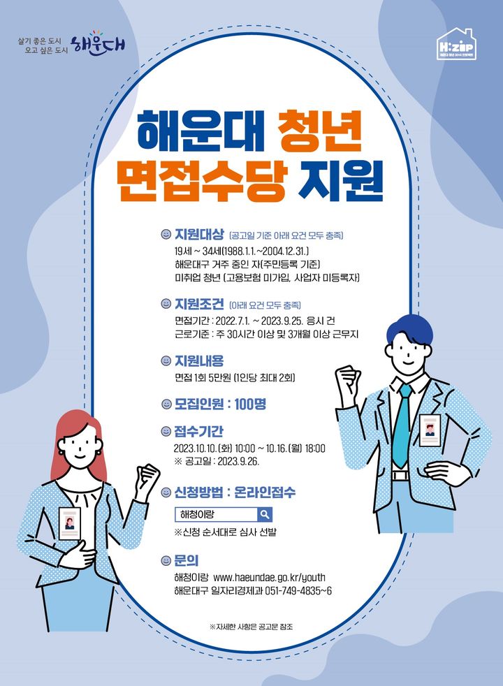 부산 해운대구는 청년들의 구직활동을 돕기 위해 면접수당을 지원한다고 2023년 10월 6일 밝혔습니다.
