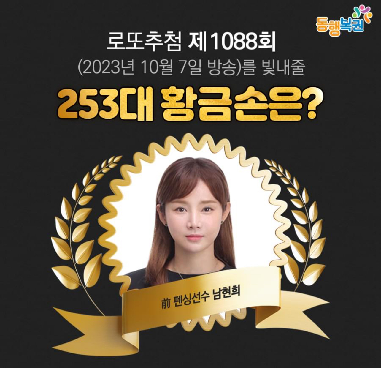 전 펜싱 국가대표 남현희 해설위원이 1088회 MBC ‘생방송 행복드림 로또 6/45’ ‘황금손’으로 출연한다고 합니다.