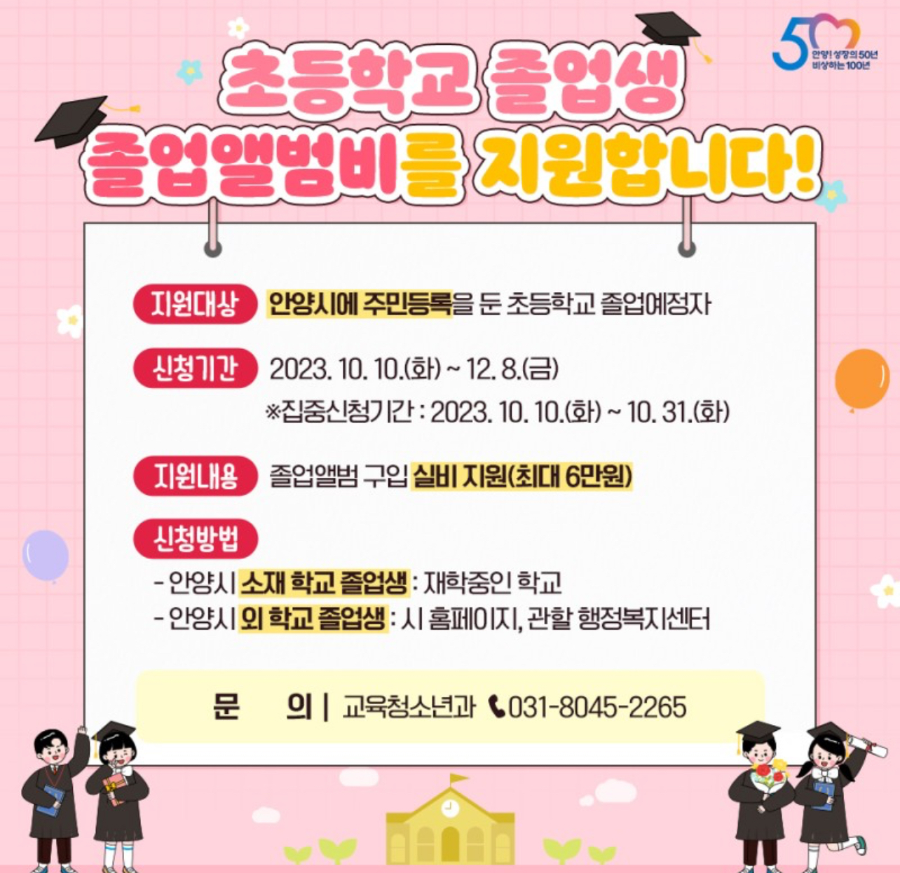 안양시 초등학생 졸업앨범비 지원