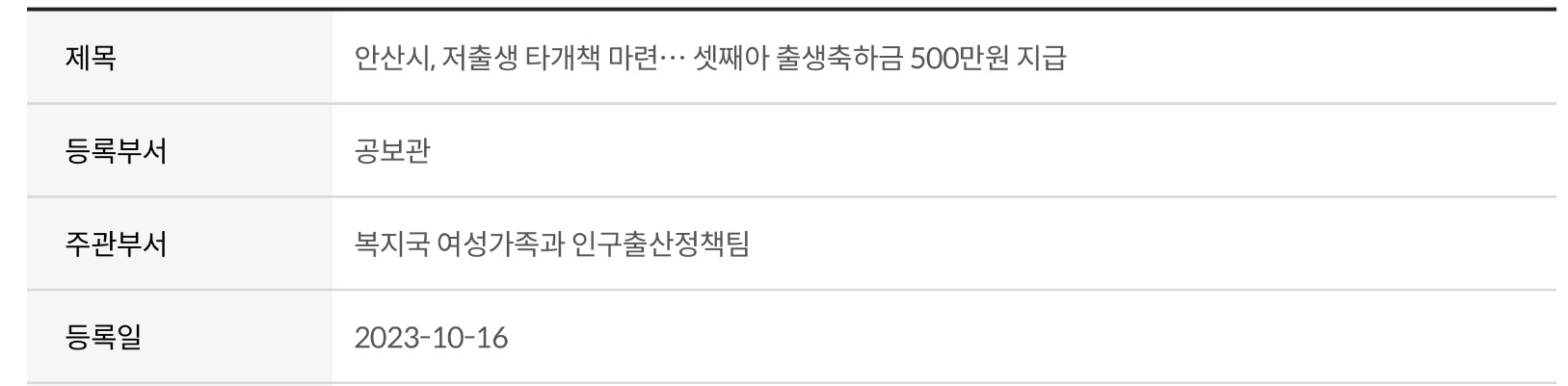 이는 민선 8기 공약사항 ‘안산형 출산지원제도’ 중 하나로 셋째 이상 자녀에 대한 출생축하금을 현행 300만원에서 500만원으로 200만원 상향 지급한다고 합니다.