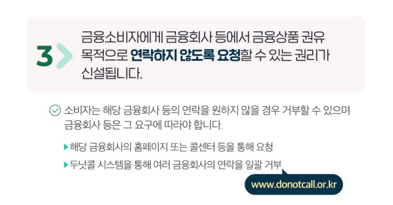 3. 금융소비자에게 금융회사 등에서 금융상품 권유 목적으로 연락하지 않도록 요청할 수 있는 권리가 신설
